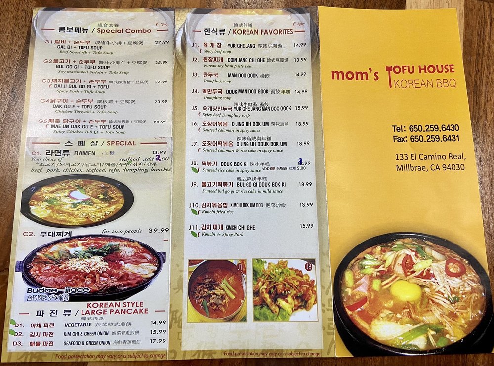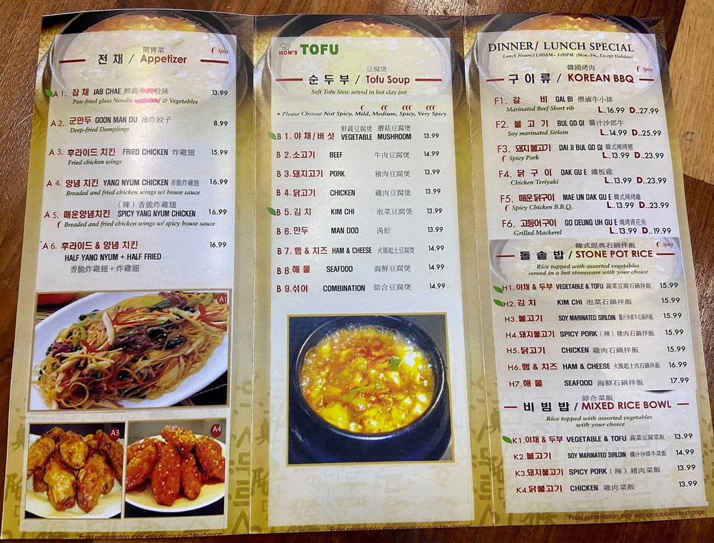 Mom's Tofu House Menu (Update 2025)